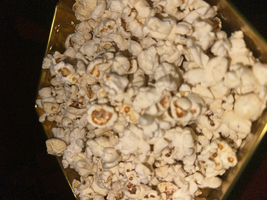 - "A close-up photograph depicts a substantial quantity of popcorn contained within a golden-colored, square or rectangular vessel" by FM-S4vcm1, licensed under CC BY 4.0