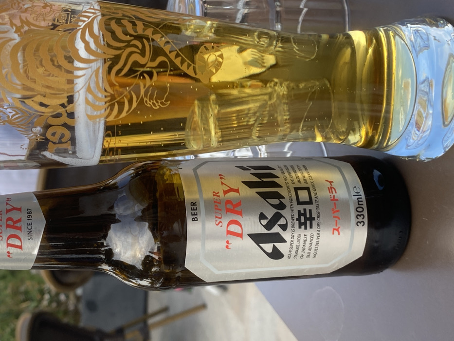 - "A close-up, eye-level shot in Saint-Laurent-du-Var, France, depicts a dark brown glass bottle of Asahi Super Dry beer positioned next to a tall, clear beer glass, both resting on a dark grey table surface" by FM-6iGRw1, licensed under CC BY 4.0