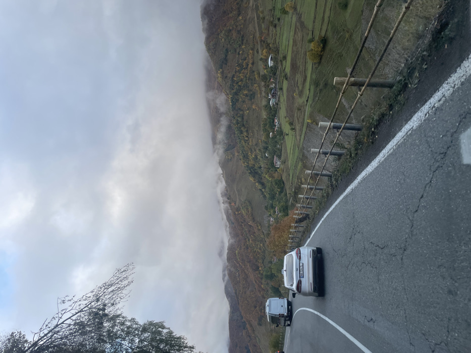 - "The image depicts a mountainous road in Jaghmiani, Georgia, under an overcast sky with low-hanging clouds partially obscuring the upper portions of the hills" by FM-YBch83, licensed under CC BY 4.0