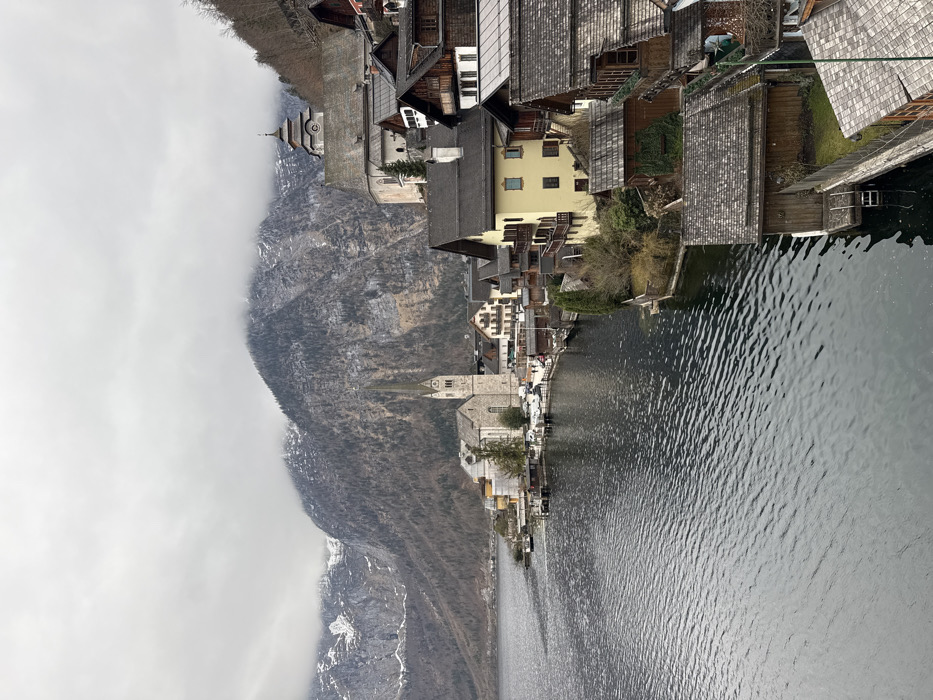 - "This elevated view captures the village of Hallstatt, Austria, nestled along the western shore of the Hallstätter See, with steep, snow-dusted mountains rising immediately behind it under an overcast sky" by FM-yfpiR2, licensed under CC BY 4.0
