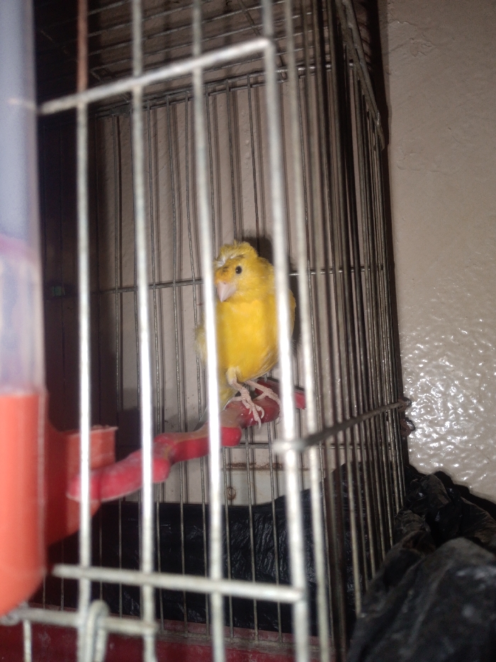 - "The image depicts an indoor scene in Barza Municipality, Syria, centered on a single bright yellow canary contained within a metal wire cage" by FM-OBPce2, licensed under CC BY 4.0