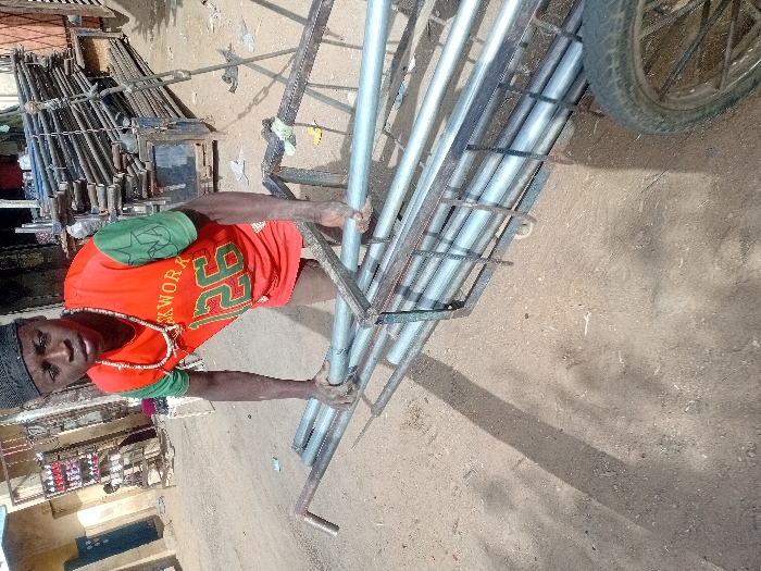 An outdoor scene in Sharada, Nigeria, depicts a young male actively engaged in manual labor