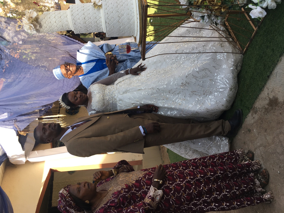 A daytime wedding celebration is depicted outdoors in Kakuri Gwari, Nigeria