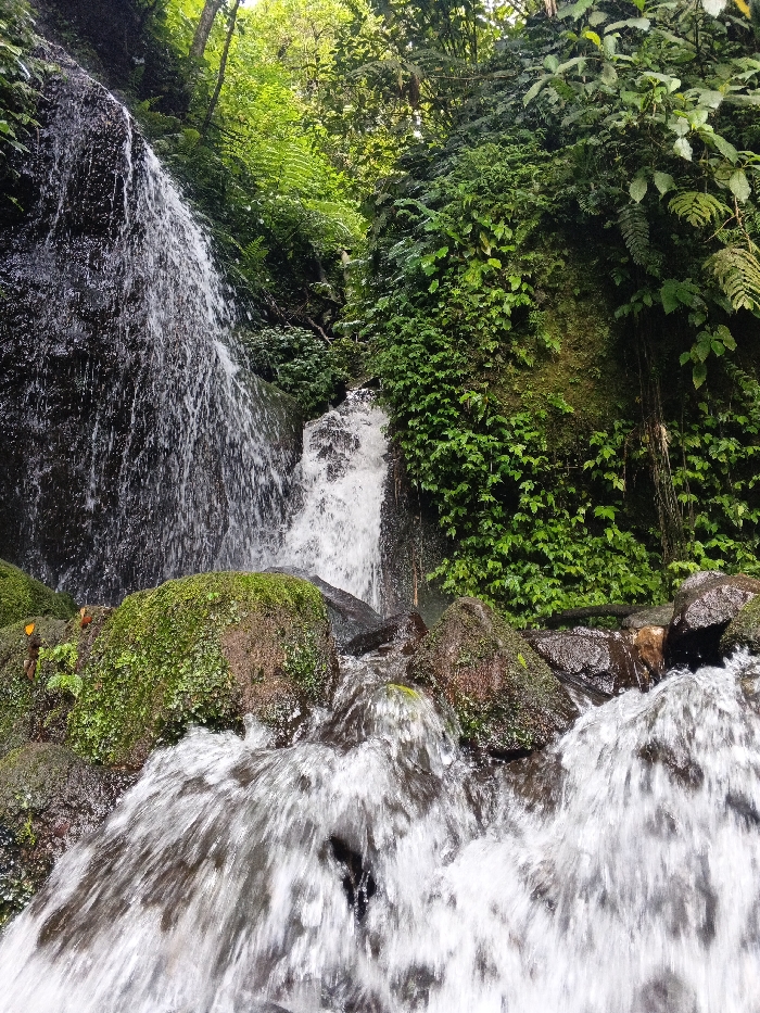 - "A dynamic waterfall cascades over dark, moss-covered rocks in a lush, verdant forest" by FM-Fvcpq1, licensed under CC BY 4.0