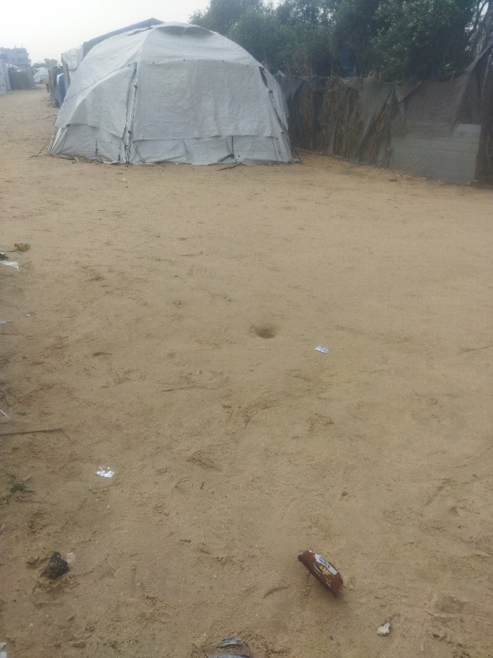 This image depicts a dry, sandy outdoor area in Khan Yunis, Palestinian Territory, under an overcast sky
