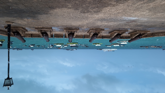 - "The image displays a scenic view featuring a row of cannons positioned atop a fortified wall overlooking a harbor" by FM-KDLDy2, licensed under CC BY 4.0