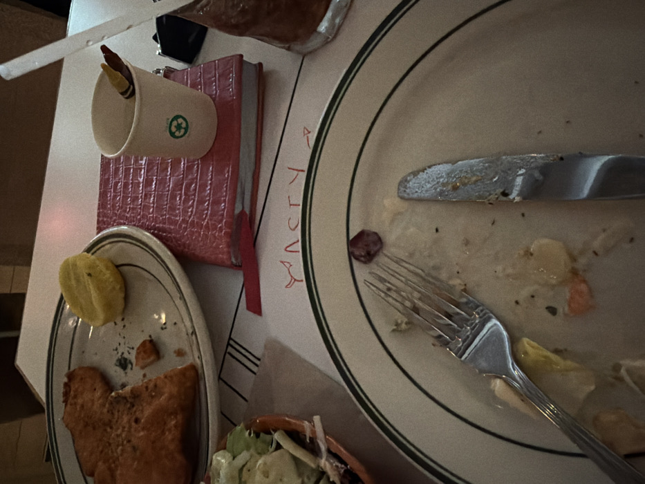 - "A mostly eaten meal is scattered across a white table" by FM-xILGl2, licensed under CC BY 4.0
