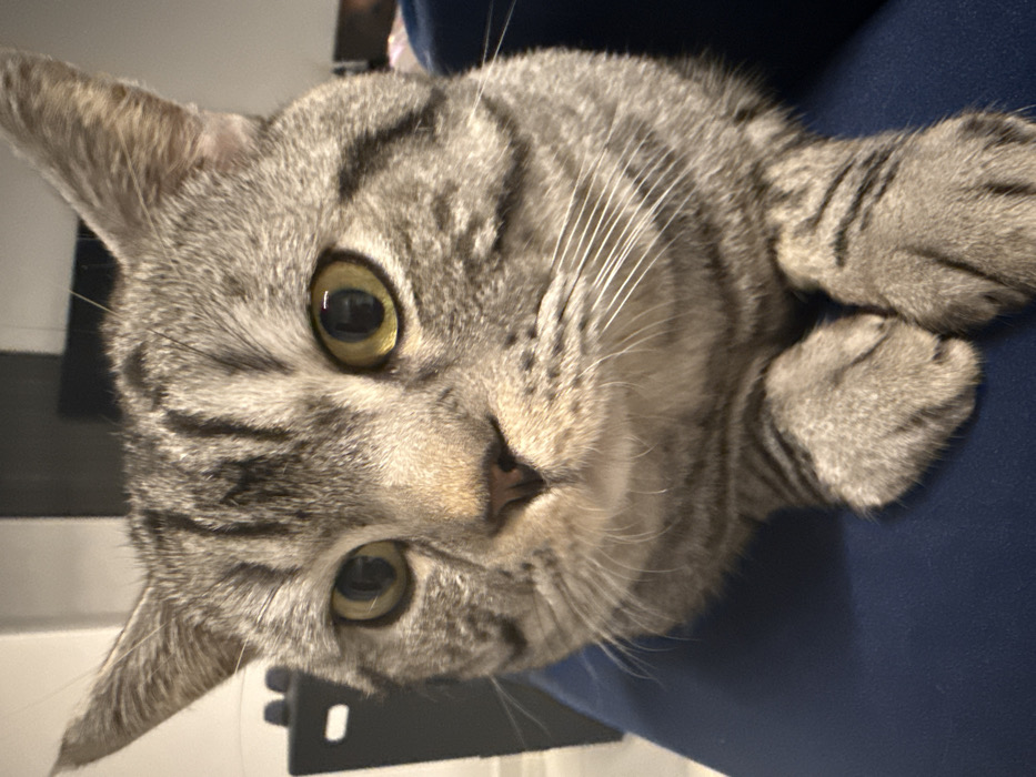 - "A domestic shorthair cat with a prominent tabby pattern of grey and dark stripes is depicted in a close-up, head-on view" by FM-rMis83, licensed under CC BY 4.0