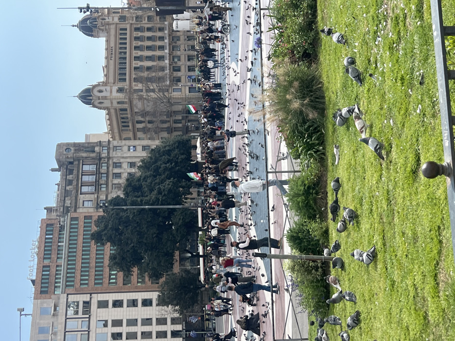 - "The image captures a bustling daytime scene in Plaça de Catalunya, Barcelona, Spain, under a clear blue sky" by FM-3gzhe2, licensed under CC BY 4.0