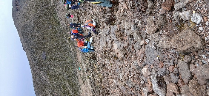 The scene at Gilman's Point, Tanzania, displays an outdoor, rocky landscape under an overcast sky