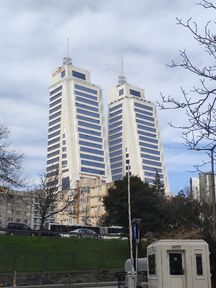 - "The image displays a street-level perspective of the Astoria Towers in Beşiktaş, Istanbul, Turkey, under a sky with scattered white clouds" by FM-XNFFj1, licensed under CC BY 4.0
