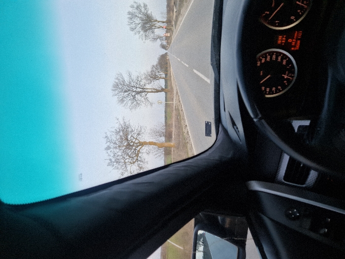 - "The image depicts a forward-facing view from the interior of a vehicle, likely a car, while driving on a rural or semi-rural road near Kavarna, Bulgaria" by FM-Trv662, licensed under CC BY 4.0