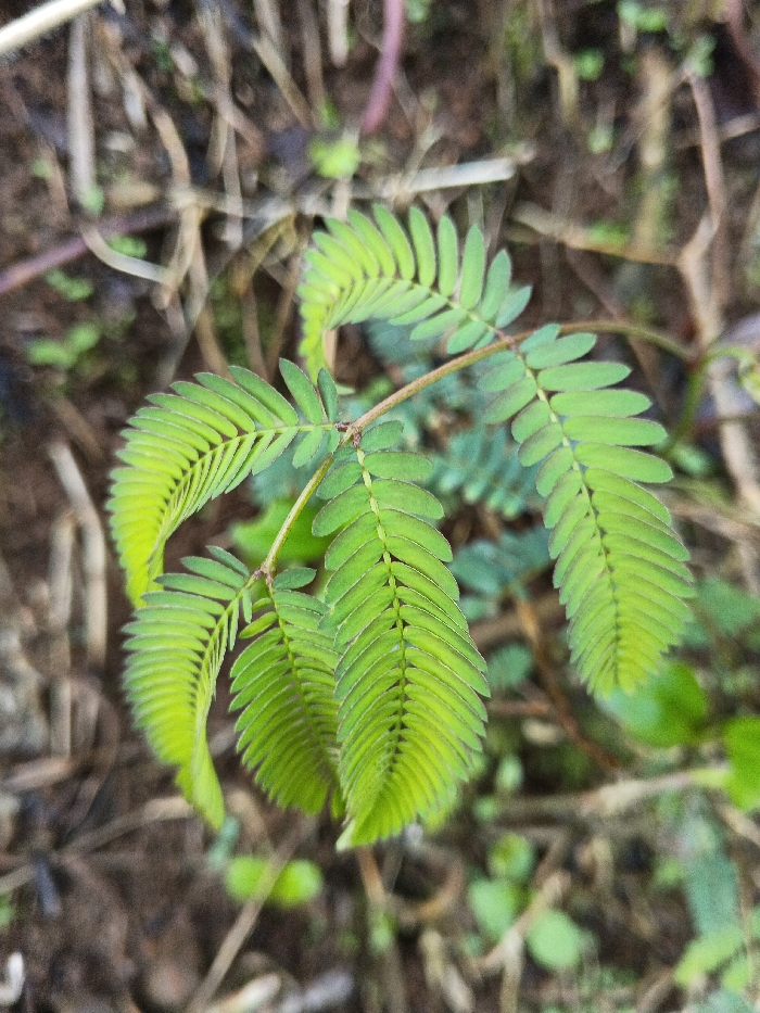 - "A close-up photograph shows a vibrant green Mimosa pudica plant, commonly known as a sensitive plant" by FM-QwlJn1, licensed under CC BY 4.0