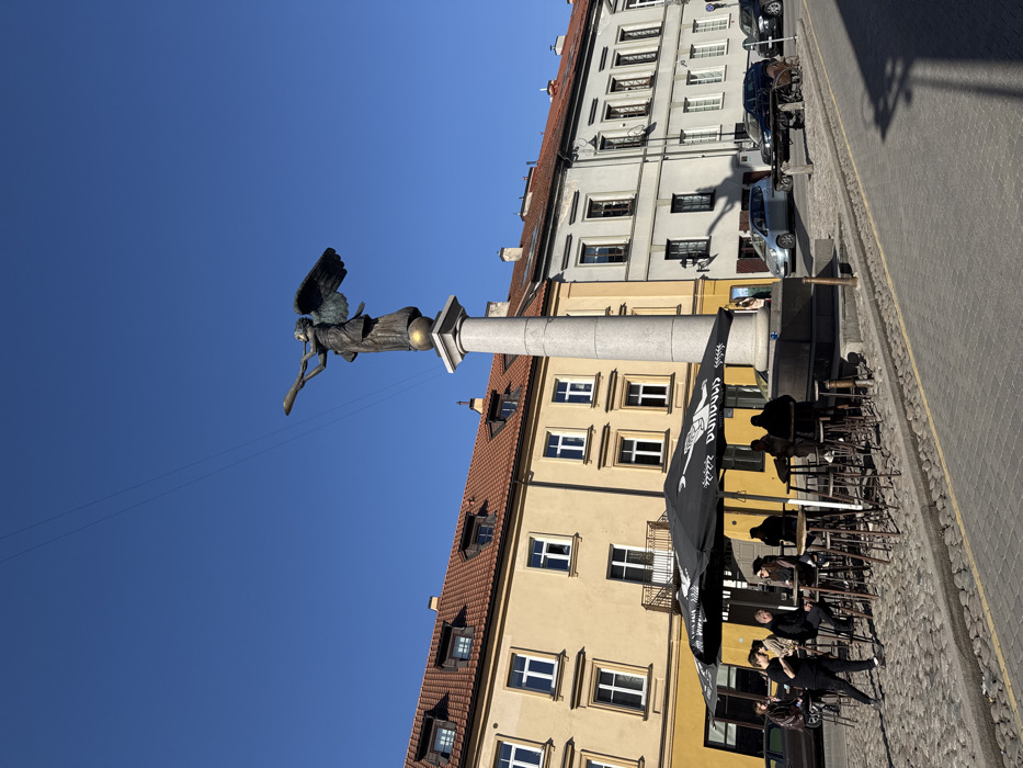 - "The image displays an urban outdoor scene in Užupis Square, Vilnius, Lithuania, under a clear blue sky" by FM-6rDCV2, licensed under CC BY 4.0