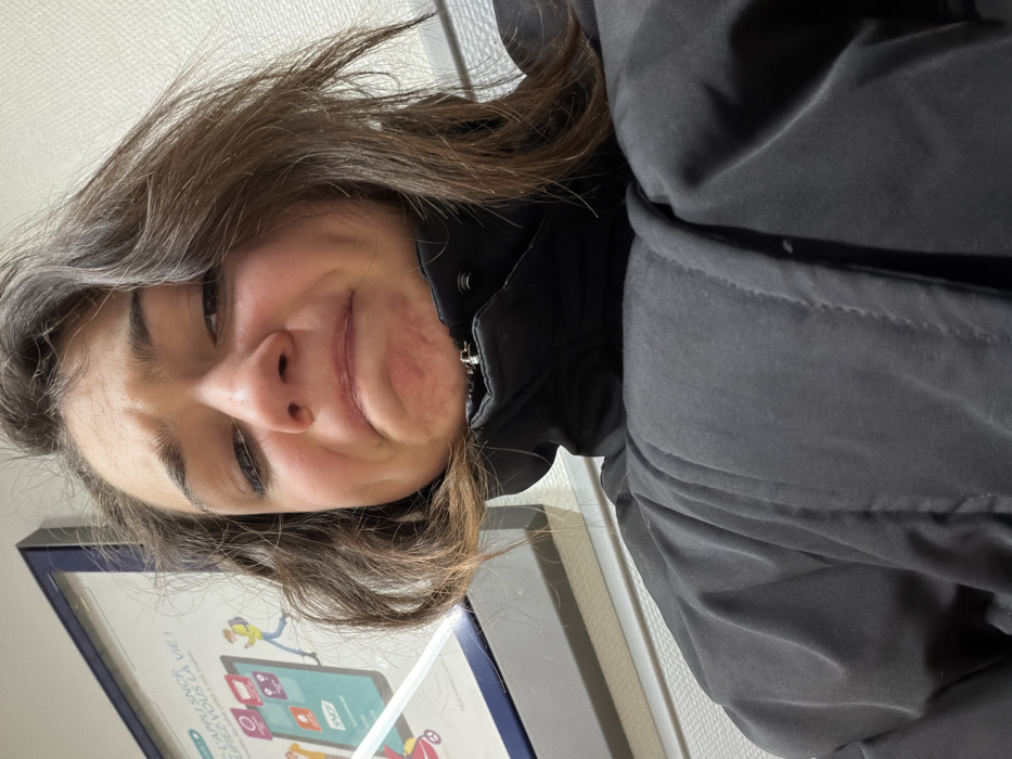 A young woman with brown hair and a black puffy jacket looks at the camera with a slight smile