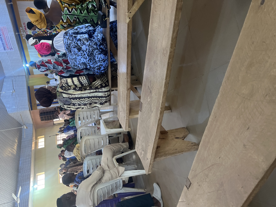 The image captures an indoor gathering within the Evangelical Church Winning All (ECWA) Nasarawa in Birnin Kebbi, Nigeria