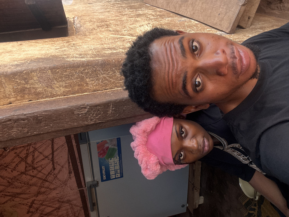 Two individuals, one male and one female, are captured in a close-up image within a weathered structural setting in Oturkpo, Nigeria