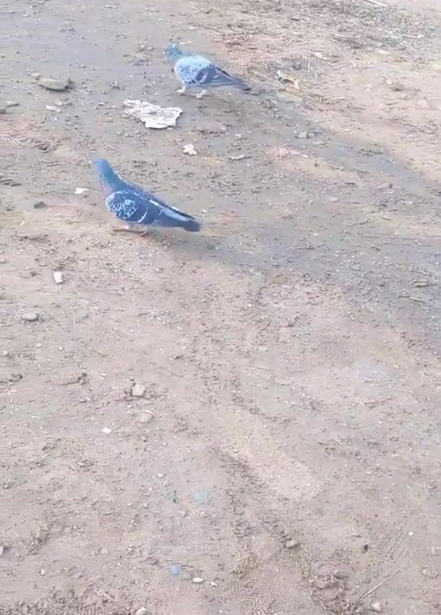 - "Two gray pigeons peck at the ground in a dirt and trash-strewn area" by FM-QrecA3, licensed under CC BY 4.0