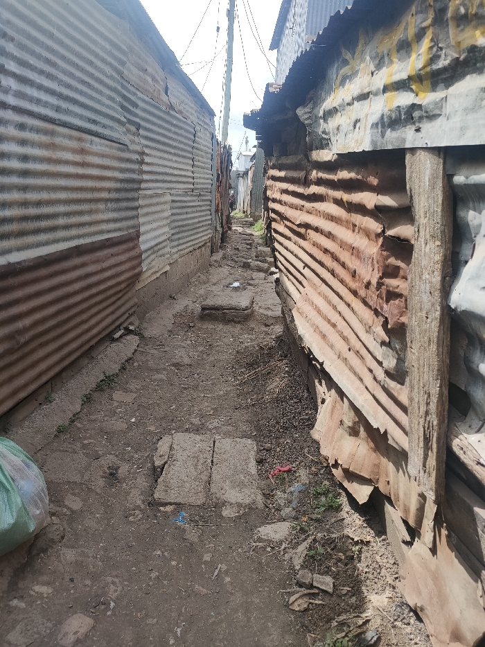 - "The image displays a narrow, unpaved alleyway within Ngong ward, Kenya, flanked by two structures constructed from corrugated metal sheets" by FM-kk0us2, licensed under CC BY 4.0