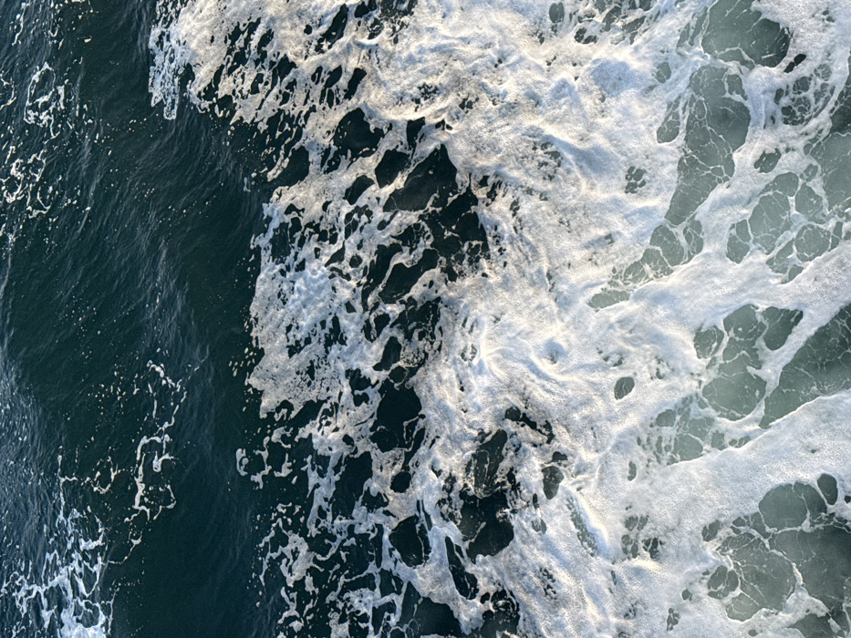 - "The image displays a close-up, downward view of turbulent water with significant foam, located in Kato Karioutes, Greece" by FM-GvERo2, licensed under CC BY 4.0