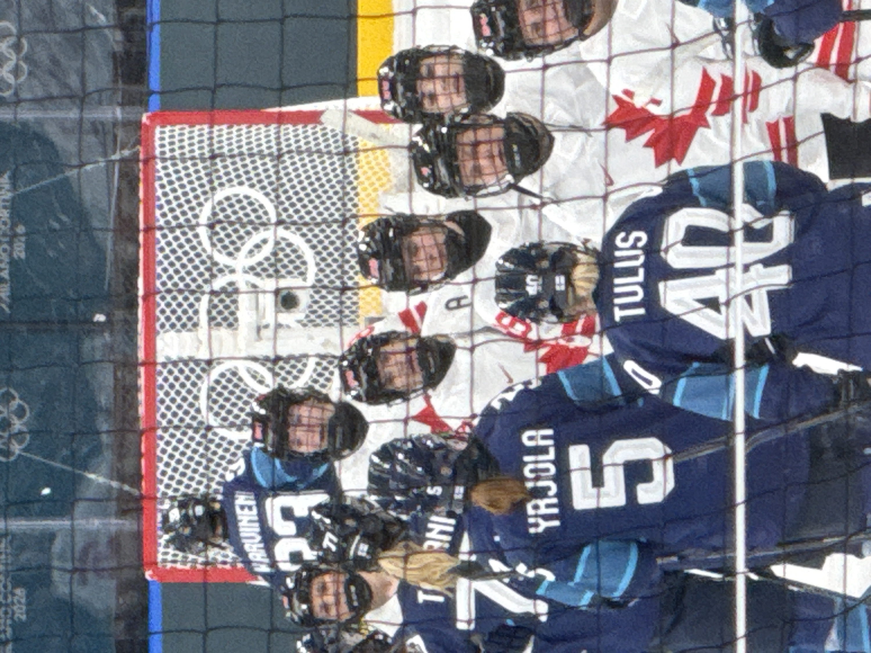 - "A hockey net partially obscures two women's hockey teams, Canada and Finland" by FM-iCfSu2, licensed under CC BY 4.0