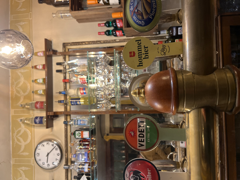 - "A bar scene features a brass beer tap prominently in the foreground, adorned with labels for "Vedett Extra IPA", "Hommel Bier", and other brands" by FM-N6iaI2, licensed under CC BY 4.0