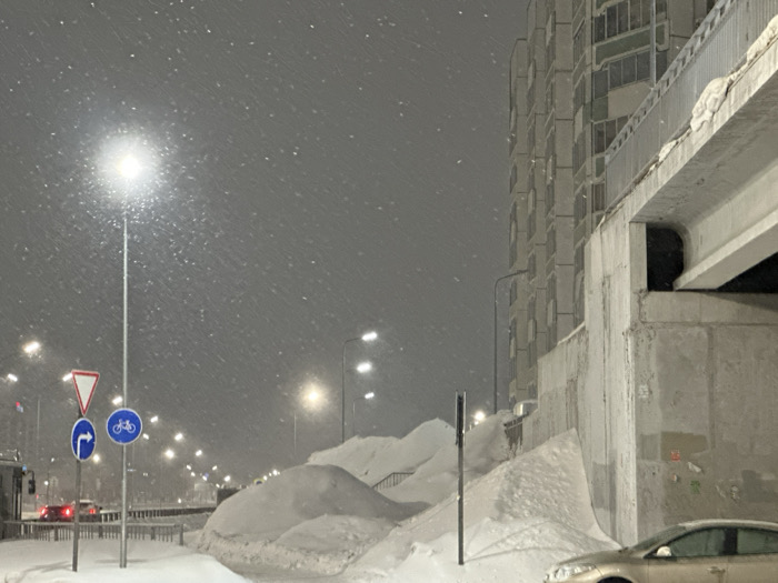- "The image depicts a winter street scene at night or during heavy overcast conditions, characterized by active snowfall, in Naberezhnye Chelny, Russia" by FM-5rUOv2, licensed under CC BY 4.0