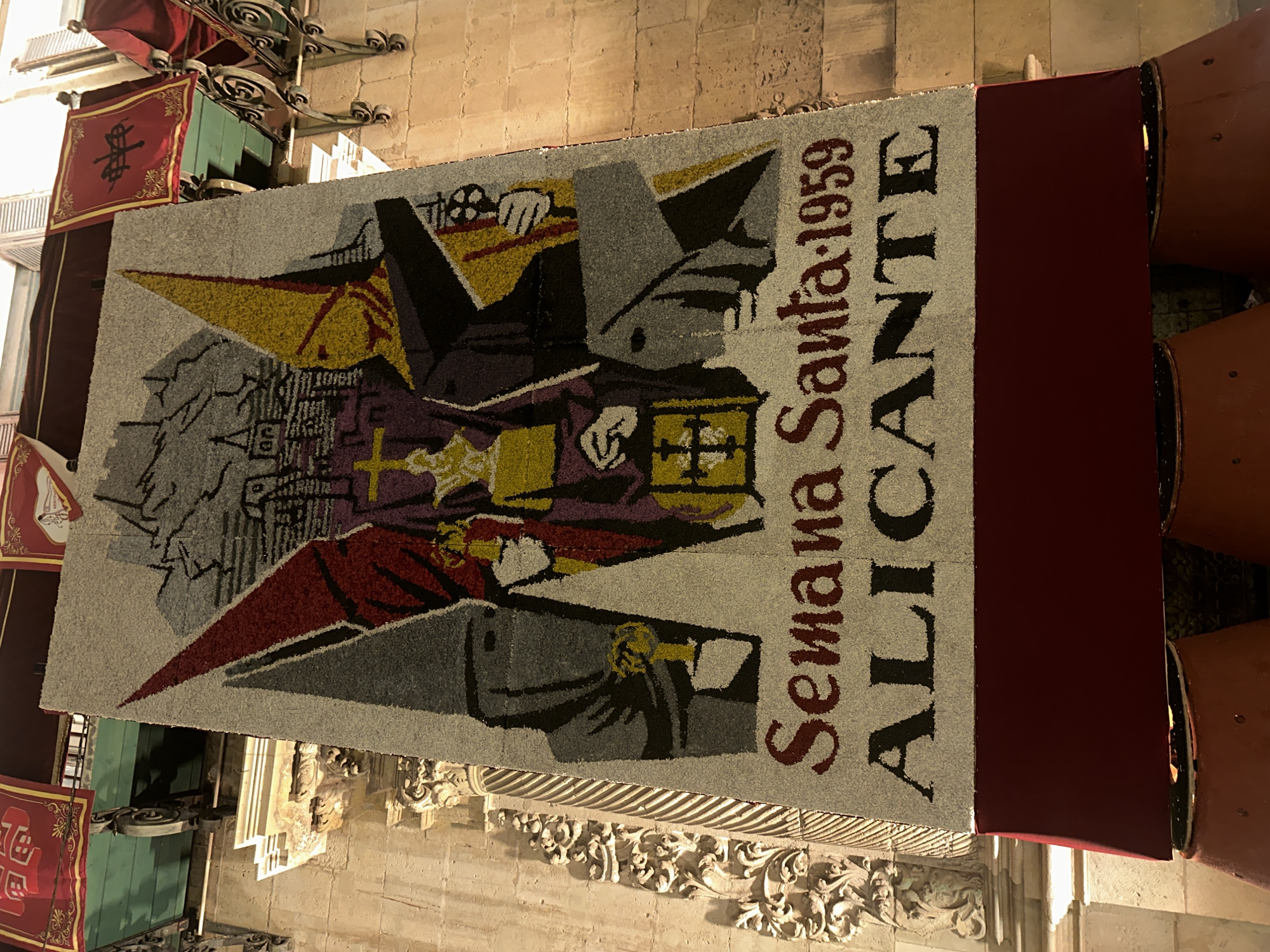 tapestry or rug depicting a religious scene with the text "Semana Santa 1959 ALICANTE"