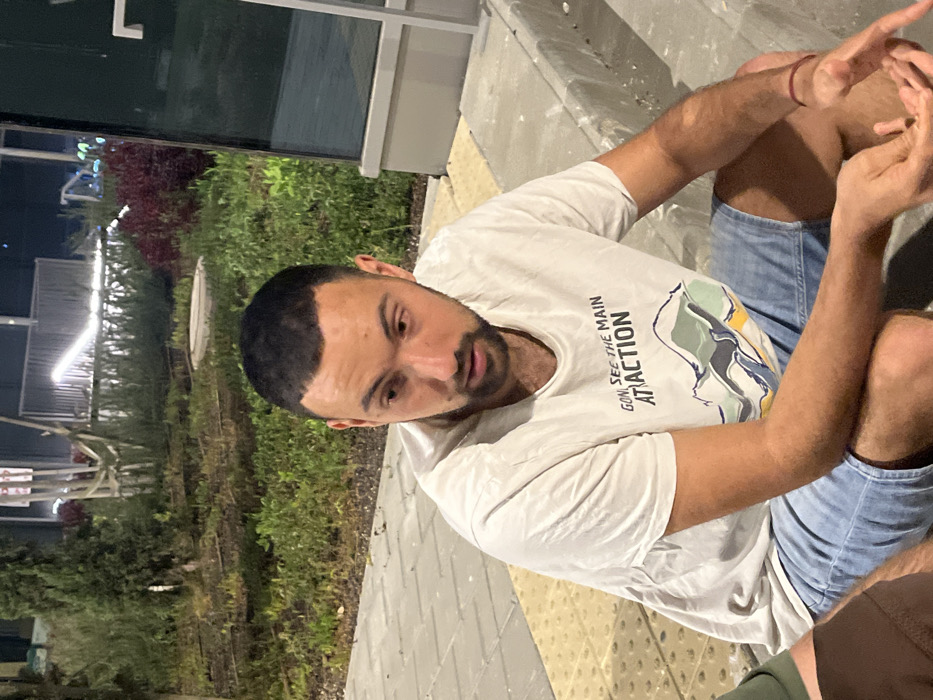 - "A male individual, appearing to be in his late teens to early thirties, with short dark hair and a beard, is depicted seated or squatting on a concrete surface outdoors at night in Modiin-Maccabim-Reut, Israel" by FM-dAsLf1, licensed under CC BY 4.0
