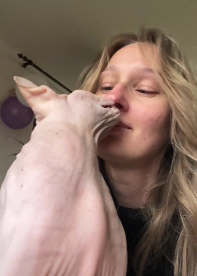 - "A woman with long blonde hair is holding a Sphynx cat close to her face" by FM-mUsH73, licensed under CC BY 4.0