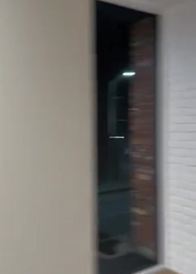 The video presents a series of framed artworks hanging on a white wall in an art gallery. The first artwork is a black-and-white image depicting a woman's legs and high heels with a book or magazine obscuring the upper half of the body. The second artwork is a blurry image with a dark-colored face or figure. The third artwork is a black-and-white image of a telephone. The wall is painted white and some audio is heard in the background.