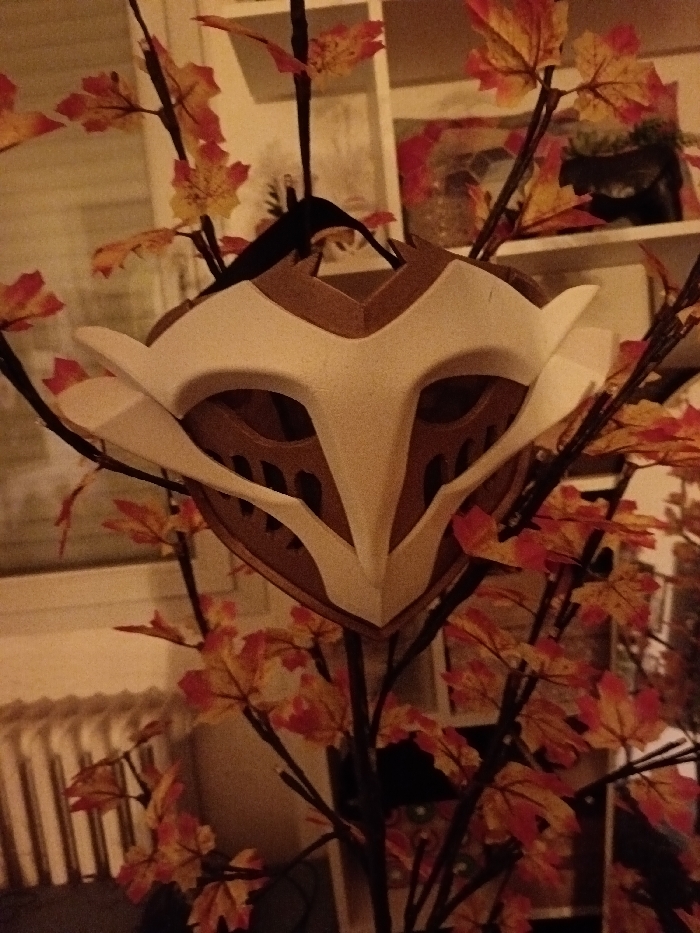 - "A mask, possibly decorative, hangs from a bare branch adorned with orange autumn leaves" by FM-Fezcd2, licensed under CC BY 4.0