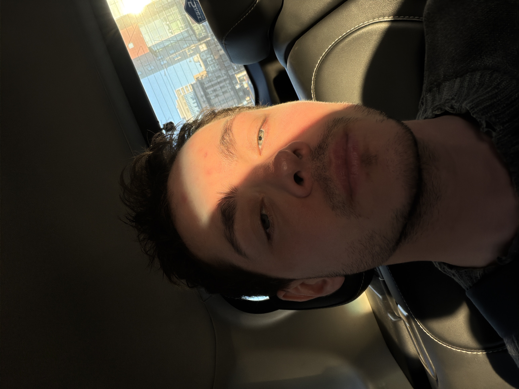 A man is seated in a car