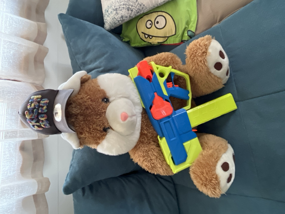 - "An interior scene in Sheynovo, Bulgaria, depicts a brown and white plush toy, resembling a hamster or similar rodent, seated upright on a teal-colored sofa" by FM-yO5cv1, licensed under CC BY 4.0