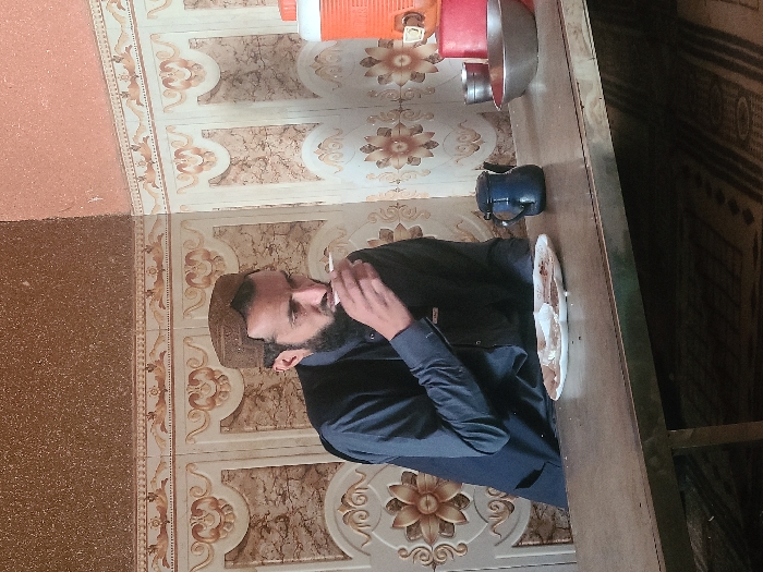 An adult male is seated at a light-colored table in an indoor setting within Quetta City Tehsil, Pakistan