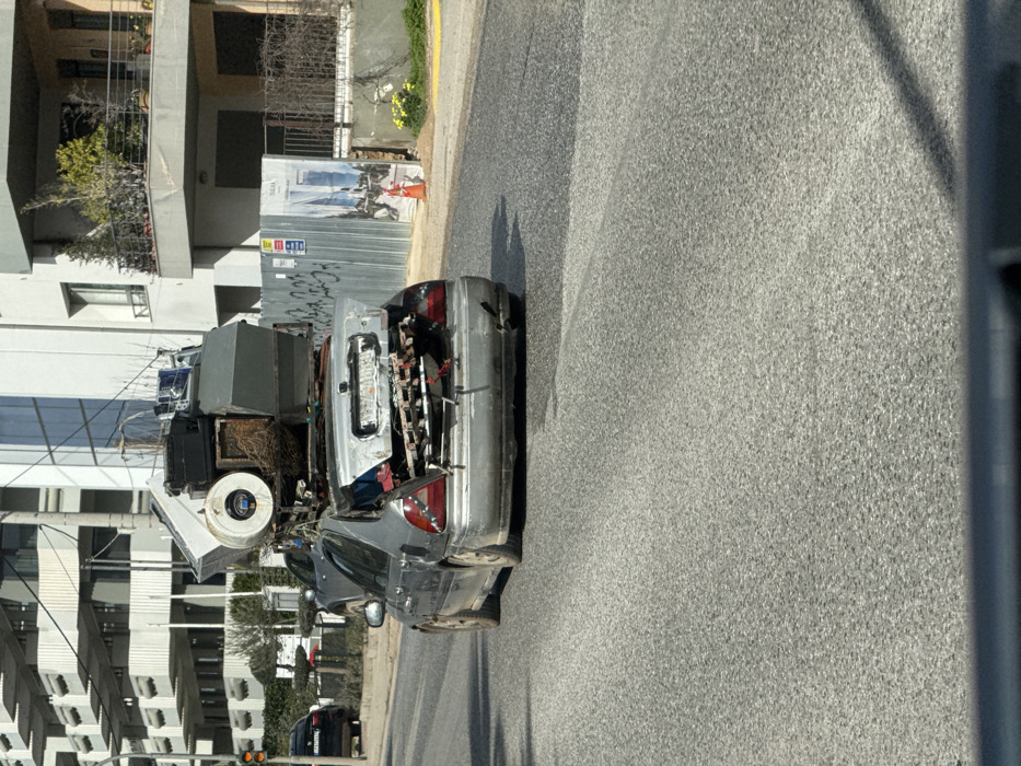 - "The image displays a silver-grey sedan overloaded with items, traveling on an asphalt road in Voula, Greece, viewed from a following vehicle" by FM-KwP182, licensed under CC BY 4.0