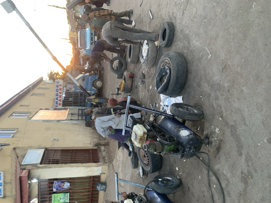 - "A group of men work on tires at a roadside tire shop" by FM-czBTY2, licensed under CC BY 4.0