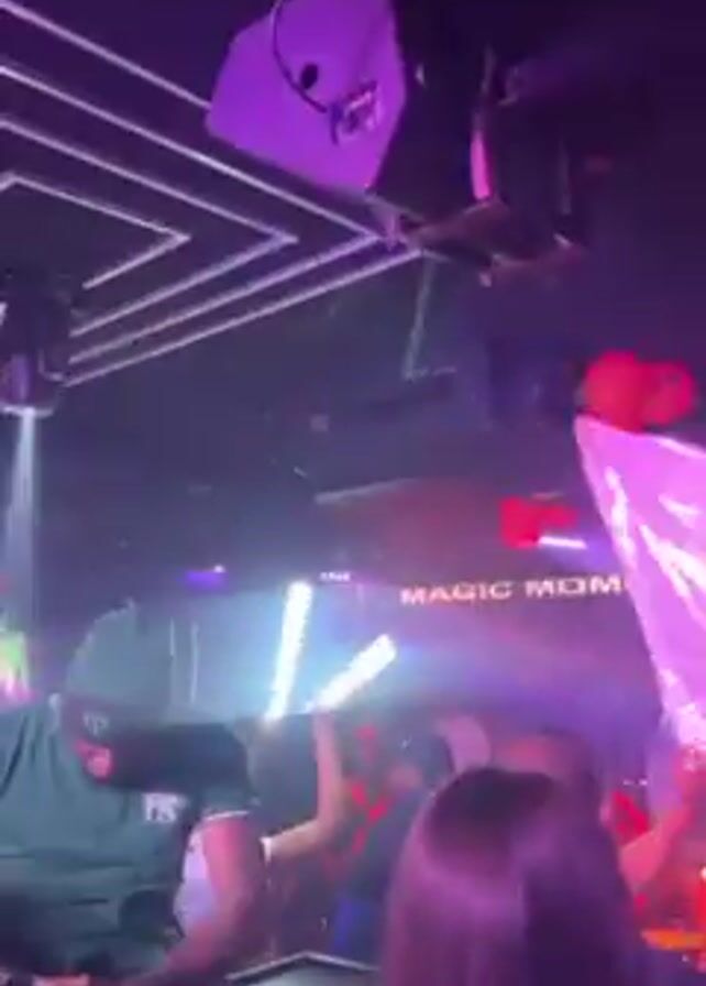 The video depicts an interior scene, likely a nightclub or similar venue, with a vibrant atmosphere