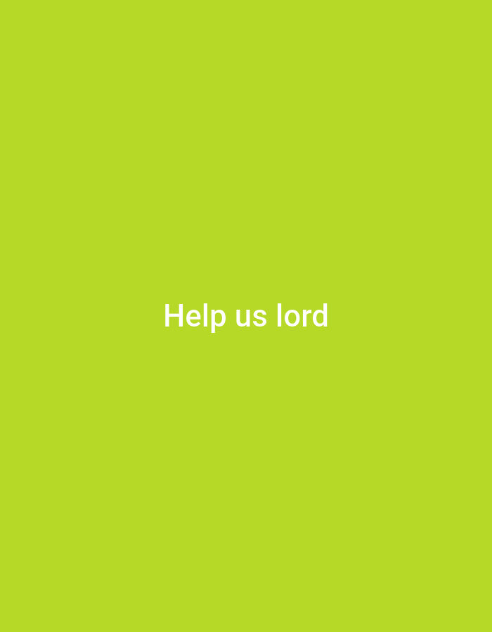 A light green background dominates the image. Centered horizontally and vertically, the phrase "Help us lord" is written in white, sans-serif font. The text is relatively small in relation to the overall image size, leaving a substantial amount of empty green space.
