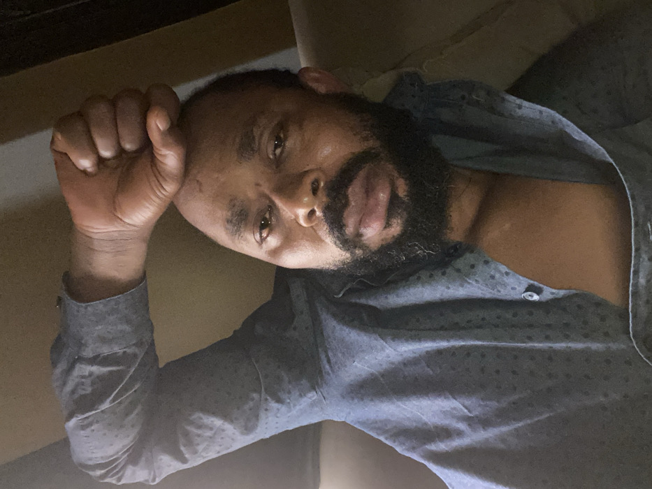 - "The image presents an upward-angled, close-up portrait of a single adult male, taken indoors in Jos, Nigeria" by FM-T4PRJ3, licensed under CC BY 4.0