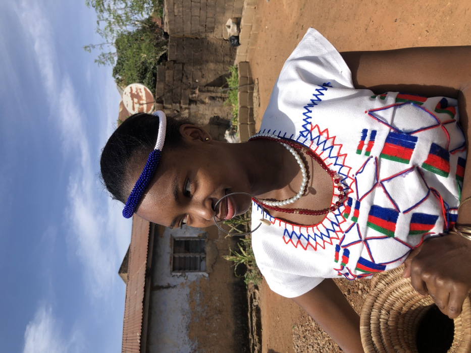 The image displays a young female, likely of African descent, standing outdoors in Jos, Nigeria, under bright daylight