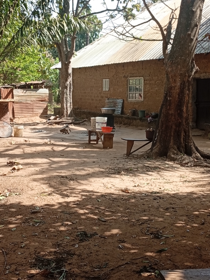 The image depicts an outdoor domestic compound in Unguwar Gaya, Nigeria, under bright daylight