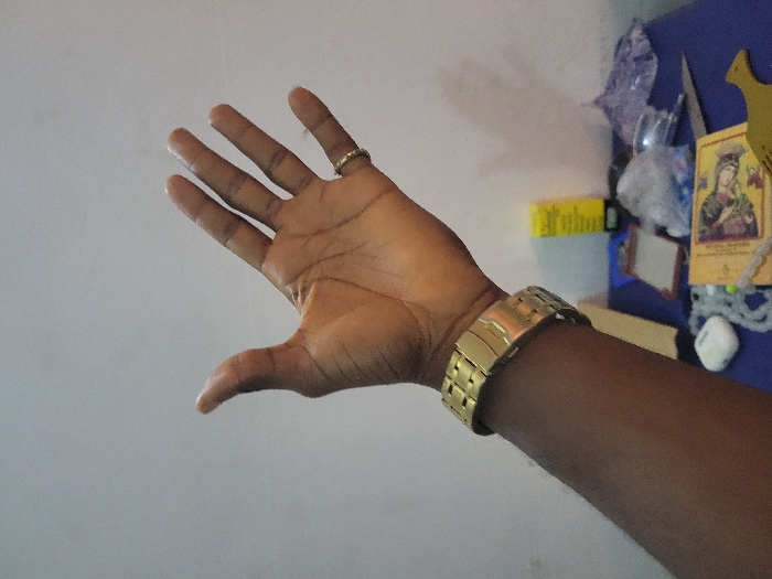 - "The scene, located in the city of Garniengo, Chad, captures a close-up of a dark-skinned individual's left arm and open hand, viewed from a slightly upward perspective" by FM-hljAh2, licensed under CC BY 4.0