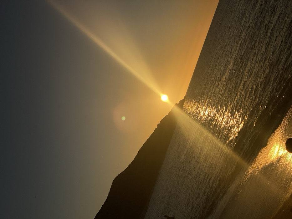 - "A tilted outdoor scene depicts a sunset over a body of water adjacent to a mountainous landmass, located in Altagracia, Venezuela" by FM-YwVSA2, licensed under CC BY 4.0