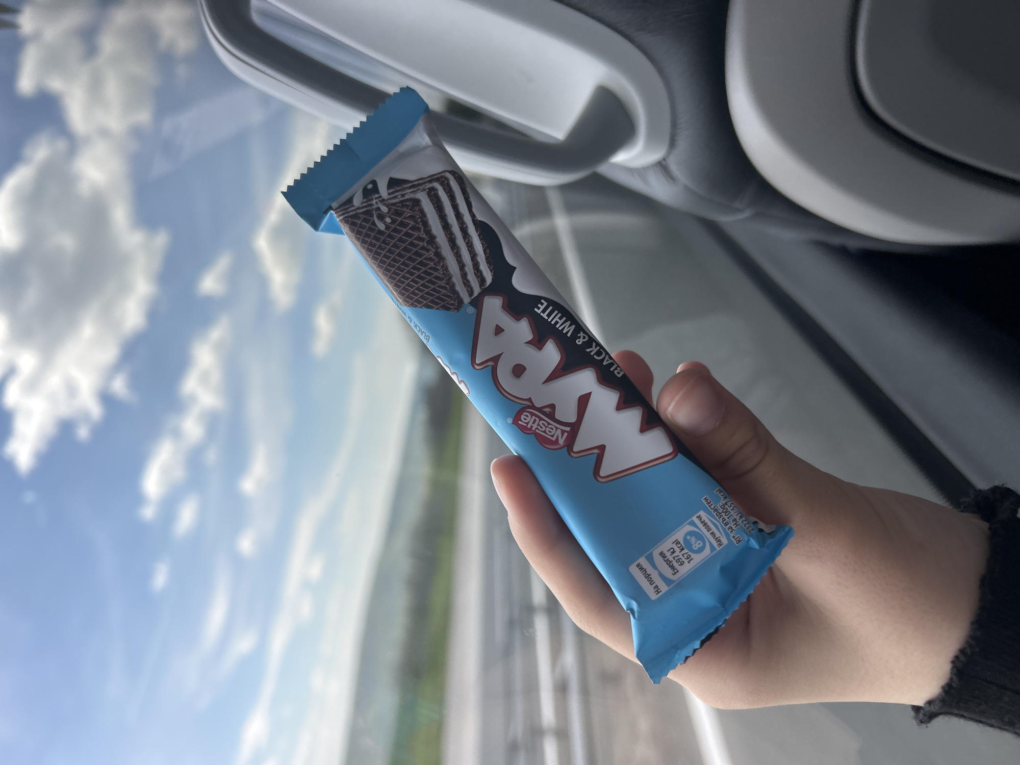 - "Here is a detailed description of the image: A hand holds a "Mura Black & White" wafer bar by Nestle" by FM-q38rg2, licensed under CC BY 4.0