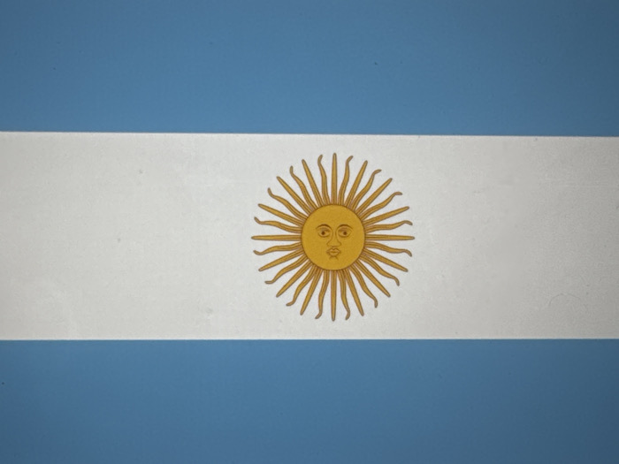 - "A static, frontal view of the Argentinian national flag, depicted on a flat surface within Novate Milanese, Italy" by FM-LRURK2, licensed under CC BY 4.0