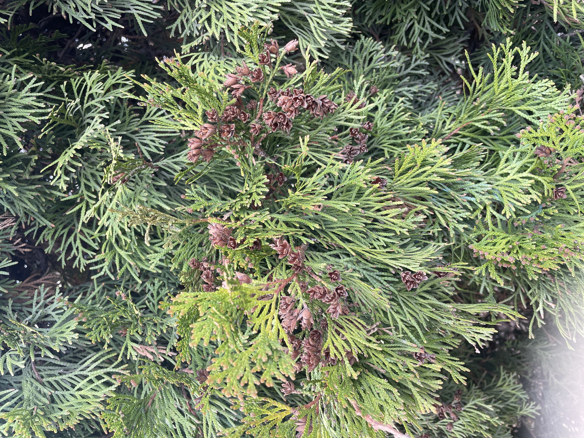 - "close-up view of a coniferous evergreen plant, likely a Thuja species (arborvitae), with dense, scale-like foliage" by FM-i2V4x1, licensed under CC BY 4.0