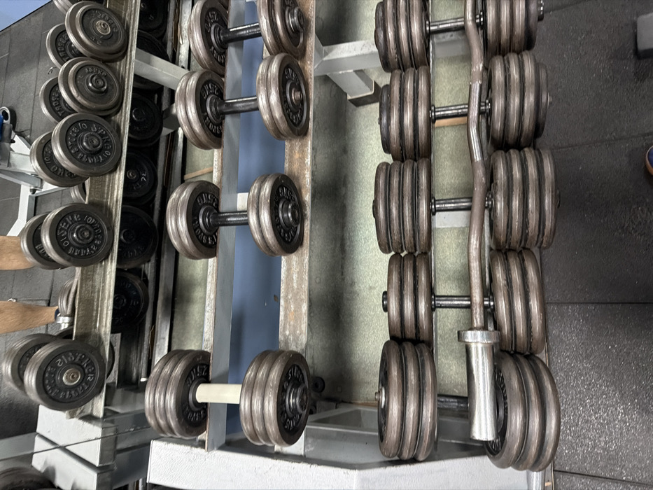 - "The scene depicts a multi-tiered metal dumbbell rack within a gym environment in Kavarna, Bulgaria" by FM-U8vBE2, licensed under CC BY 4.0