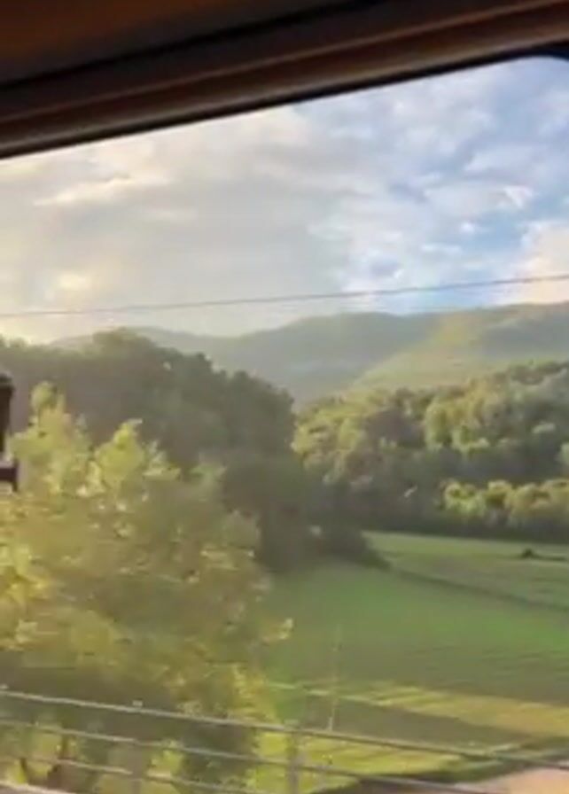 view from a high-speed train moving through the countryside