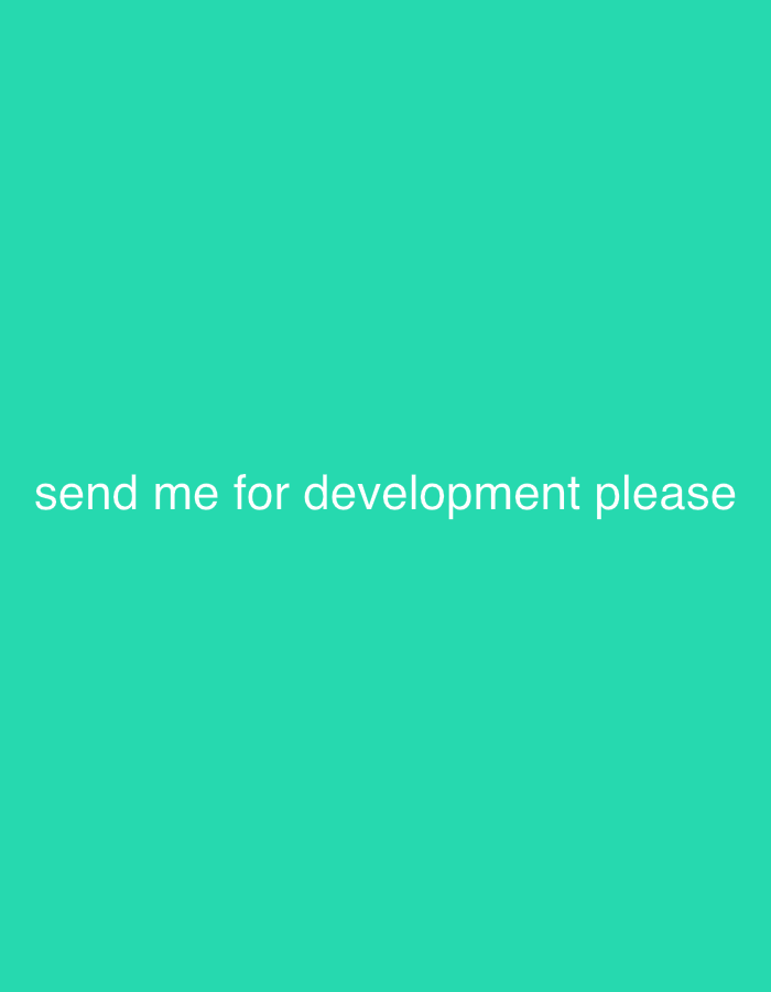 The image is a solid aquamarine color with the phrase "send me for development please" written in white in the lower portion of the image
